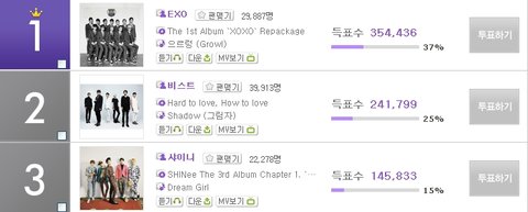 우선여기서부터 샤이니가 비스트한테 지고있었음