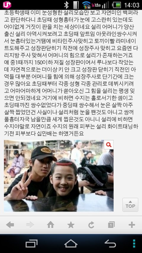 그리고 설리 눈 앞머리는 성형으로 만들수없음; 인터넷에서 앞트임 사진검색 해보셈 흉터남고 앞이 동그랗게 파임