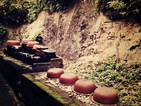 뒷마당에는 빨간 고무모자쓰고 나란히 서있는 장독대들.