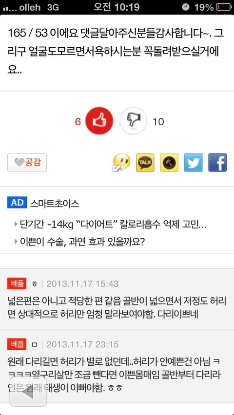 글쓴아 ;; 나도 들어가봤는데 다들 이쁘다고 하드만 ;; 특히 질문이 다리이쁘냐고 아니라 골반 어떠냐고 물은거였다. 골반적당하고 이쁘더라