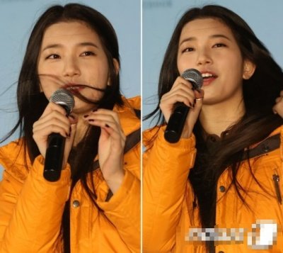 바람 때문에 힘들어 보이는 아이돌