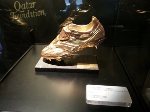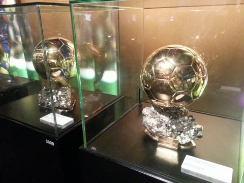 이 사진은 메시의 발롱도르 트로피와 골든슈 트로피 입니다.