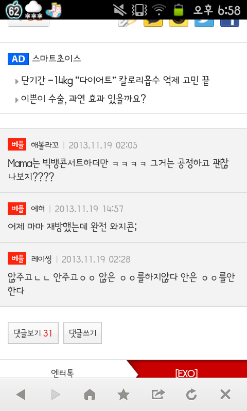 마마가 끝난뒤 엑소팬분들이 무슨 얘길하실지