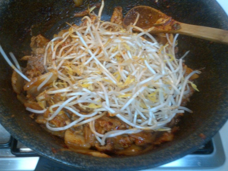 이제 마지막으로 숙주나물을 올려주고 뚜껑을 덮었습니다.