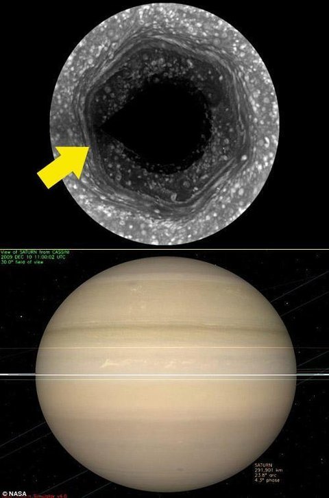 육각형의 기묘한 문양의 북극점에 자리잡고 있었다는것.