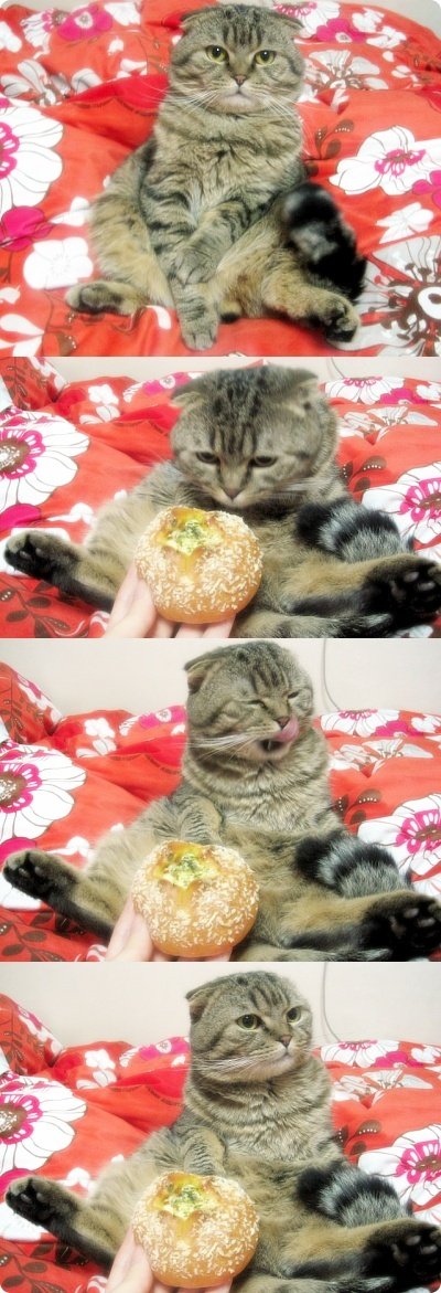 제가 만든 카레빵을 거부하는 마요...( ´・ω・`;)