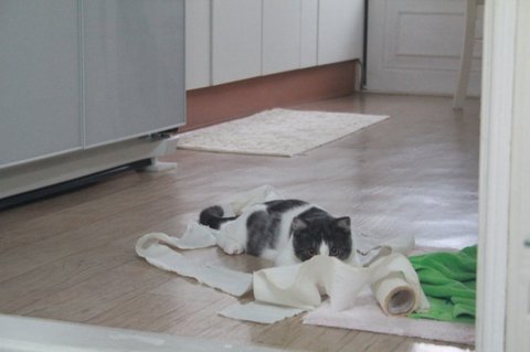 엄마가 한눈판사이 우다다다 두루마리 휴지를 물고와서 장난도 치고