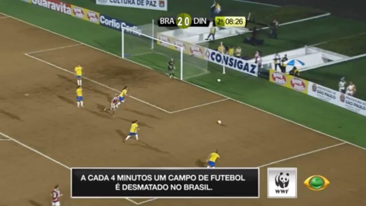 “4분마다 축구장 필드 크기의 산림벌체로 인해 브라질 밀림이 고통받고 있다”라는 메시지를 전달하였습니다.