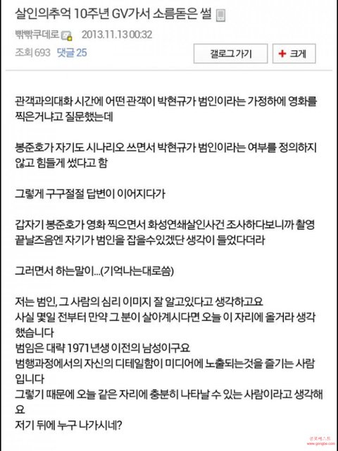 「봉준호감독 답변이 소름 - 공포 - 공포베스트」 http://gongbe.com/?mid=board&d0cument_srl=38816