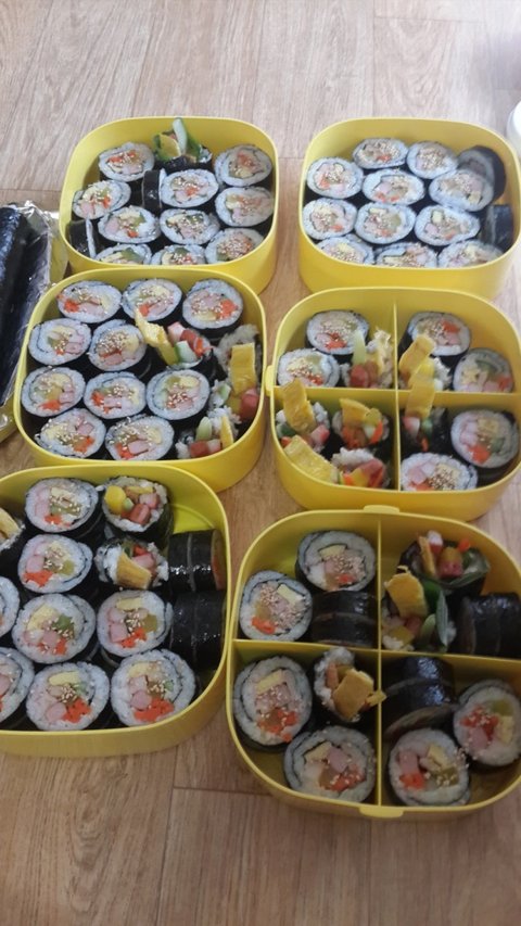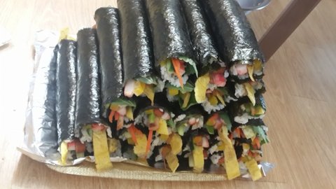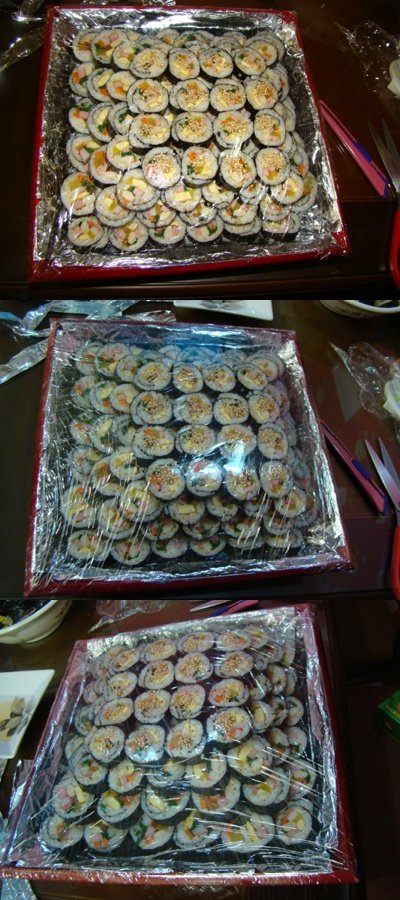 혼자 새벽부터 일어나서.... 20줄 이상의 김밥을 말았다는 ^^;;