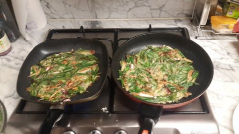 후라이팬 두개의 신공..으로 전을 부친다는 ^^