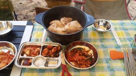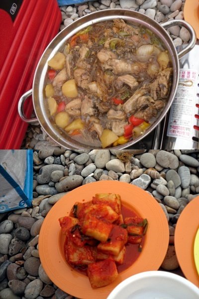 야외에서 먹는 찜닭.. 그리고 직점 담금 깍두기..