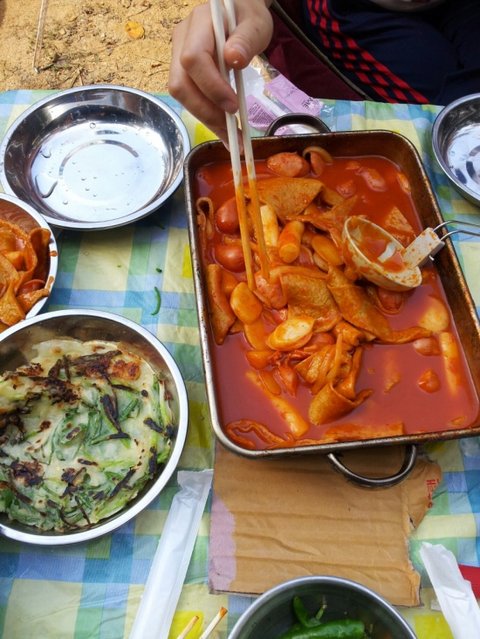 담날 아침에 떡볶이에... 부추전....