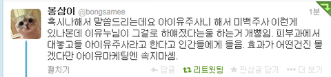 어떤분이 김이나작사가님 트위터로 아이유 비타민 주사 맞앗냐는 질문에 트위터로 답해주심.
