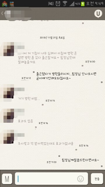 아프다고 팀장님께 병원다녀온다고 말씀드린다더니 말씀을 안드렸나봐요.