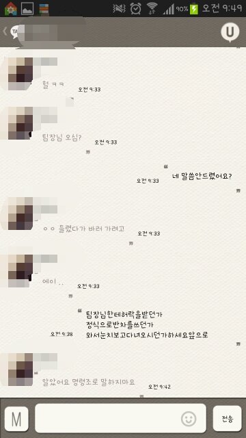 댓글대로 저한테 저런소리 듣기싫으면 본인 근태관리를 잘했으면 되는거고,부재를 알리려고 했으면 팀장님한테 먼저 승인받고 저한테 늦는다 통보해줘도 되는건데
