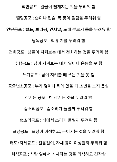 왕따 경험이나 소심한 이들이 갖는 공포증