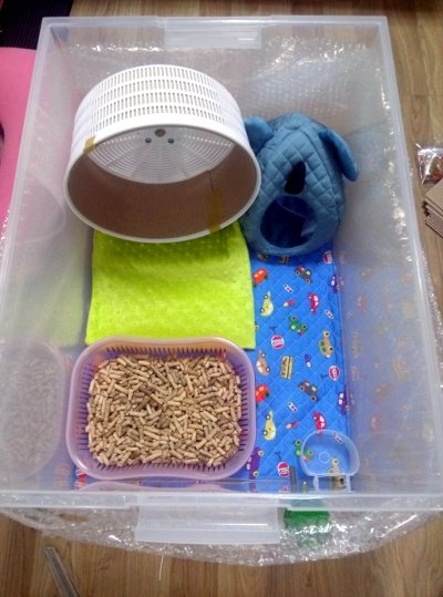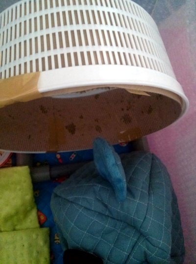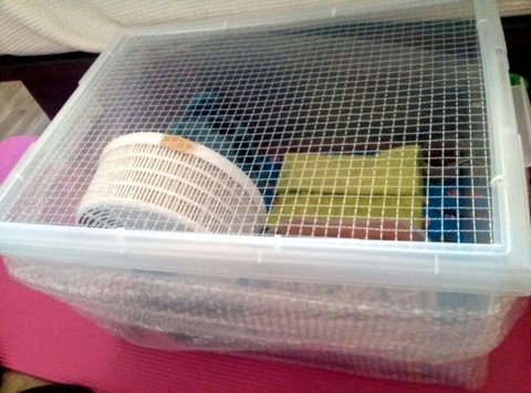 처음 왔을때 뽁뽁이가 플라스틱 상자를 덮고 있었음