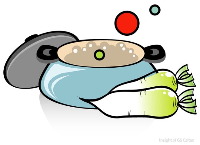 Tip. 무가 물러지게 해서 간이 잘 배게 하기 위해 미리 끓인다. 끓으면 무에서 물이 나와