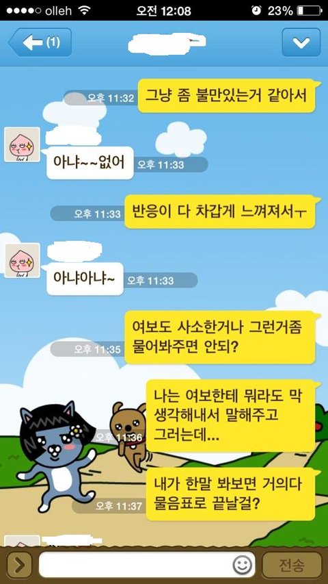 여자친구와 카톡을 하면 너무 저만 질문하는거 같아요...