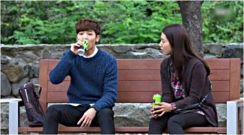 강민혁은 블루 니트에 리누이 가방, 박신혜는 핑크 셔츠~ 커플룩이자나 완전 ㅠㅠㅠ