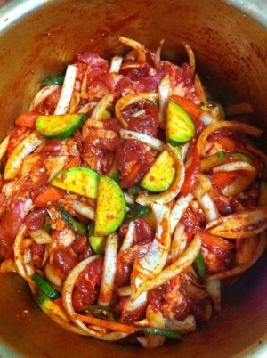 제육볶음인데... 요건 완성했을때 사진이 없네요. 양념 재워놓은것~