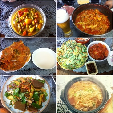 이제 술안주인가요~~~ 카레, 라볶이, 김치전, 부추전, 도토리묵, 그리고 청국장~