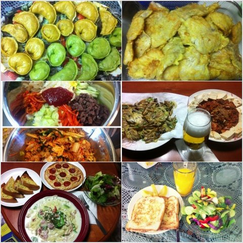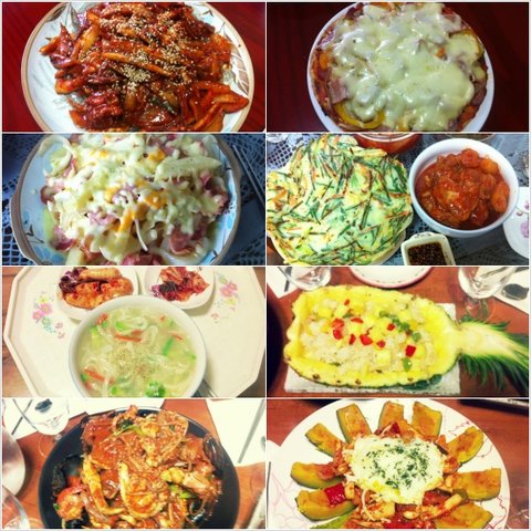 닭도리탕&부추전, 칼국수(감자), 파인애플볶음밥, 해물찜(동생이한거에용), 단호박해물찜..