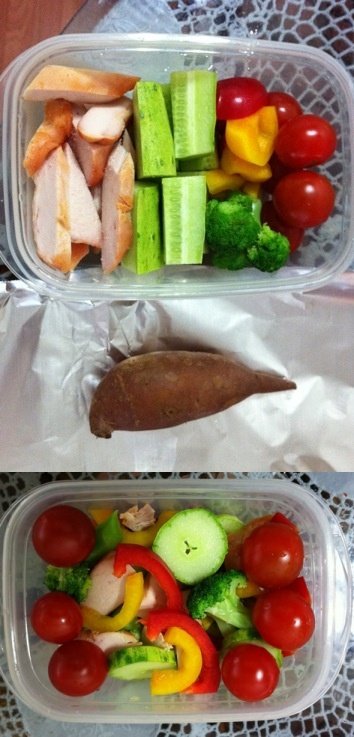 위에 처럼 먹다보니 불어난 살은 어쩔수가 없네요..에휴~ 그럴땐 이렇게 풀때기랑 닭가슴살, 고구마로 살아야하죠.... 부럽다~ 먹어도 살 안찌는 체질..ㅠㅠ