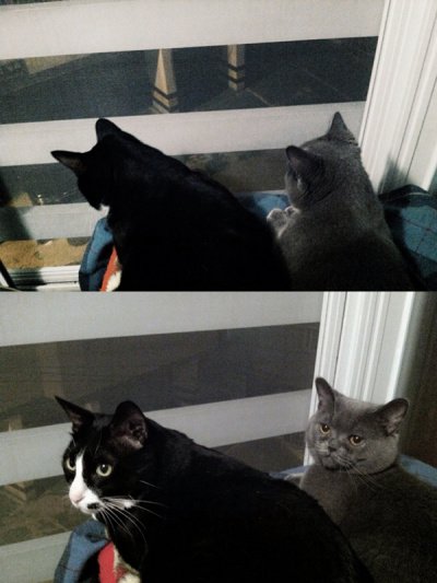 가을바람이 선선할 적에 베란다에서 부쩍 자주 붙어있는 요 귀요미 둘.
