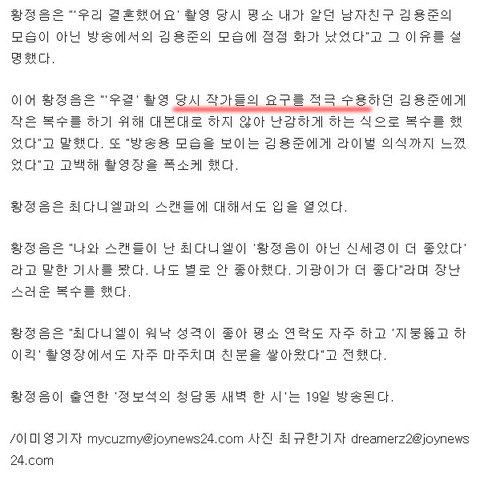 증거 3. 우결 시즌 2 당시 이루어졌던 황정음씨의 인터뷰