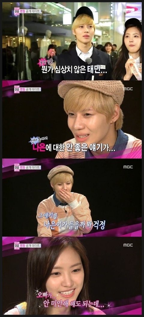 착하고 순진한 이미지에, 밝지만 평소에 굉장히 순하기로 소문났었던 태민이 우리결혼했어요 촬영 이후로 여자나 울리는 썅놈이 됨.