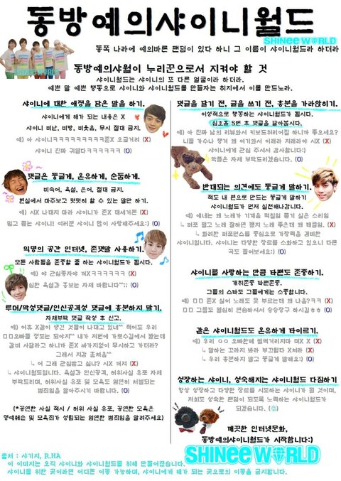 → 샤이니 대표 팬페이지 '샤기지' 에서 실제로 이루어진 동방예의 샤이니월드 프로젝트.