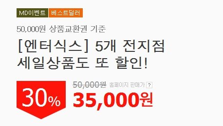 위메프에서 엔터식스 상품권을 50,000원인데 35,000원에 구매할 수 있답니다!!!