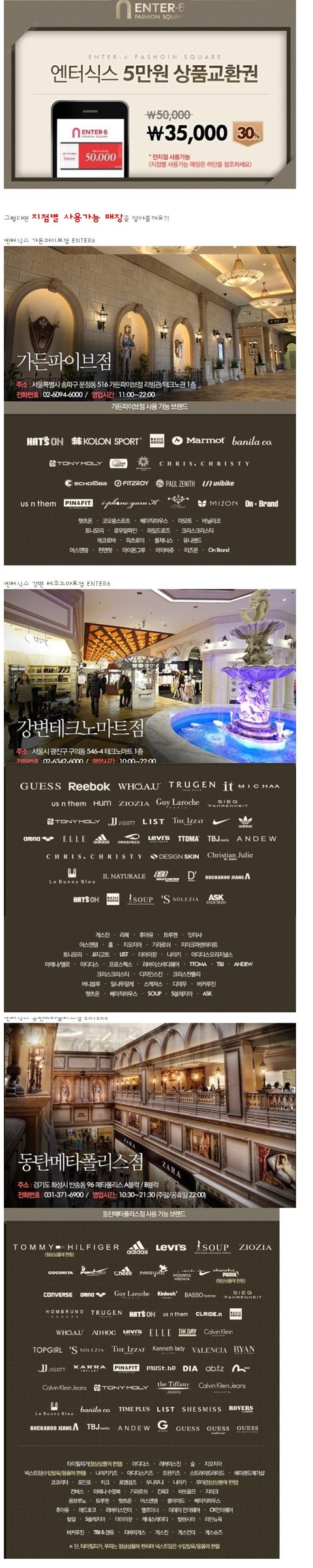 (엔터식스 상봉점, 엔터식스 가든파이브점, 엔터식스 강변 테크노마트점, 엔터식스 동탄 메타포리스점, 엔터식스 왕십리역점-우리집은 동탄빼고 다 가깝네.ㅋ)