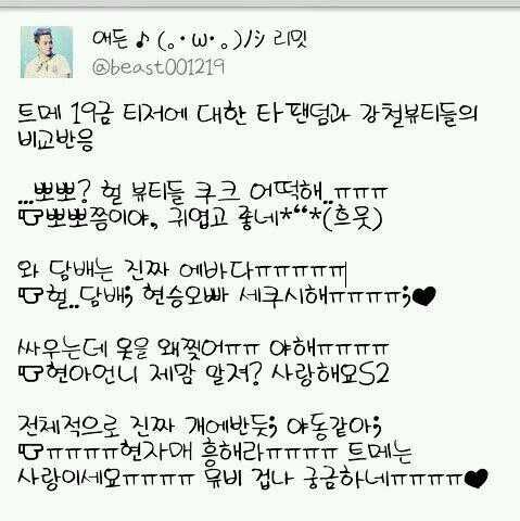 난 비스트 좋아한지 꽤 된 팬임. 딱 비투비 까지만 큐브라인을 좋아했는데 이젠 ㅂㅊㅁ 때문에