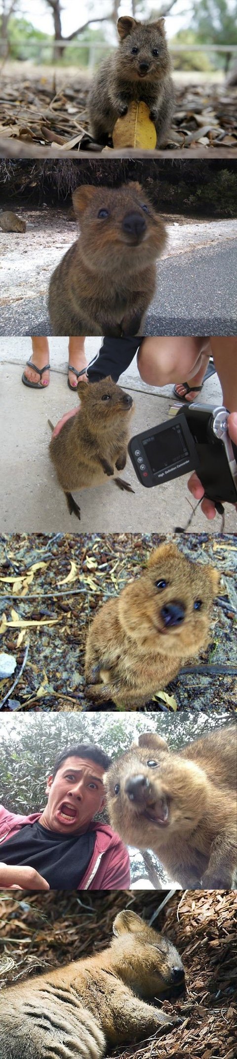 이동물 이름은 '쿼카'라고합니당 호주에 서식하는 캥거루과 동물이구요 그래서 쪼그만주머니에 새끼를 넣구 다녀요 ㅋㅋㅋㅋ 멸종위기동물이기도 해요 ㅠㅠ