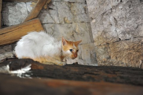 어디서 비를 쫄딱 맞고 온 고양이네요.