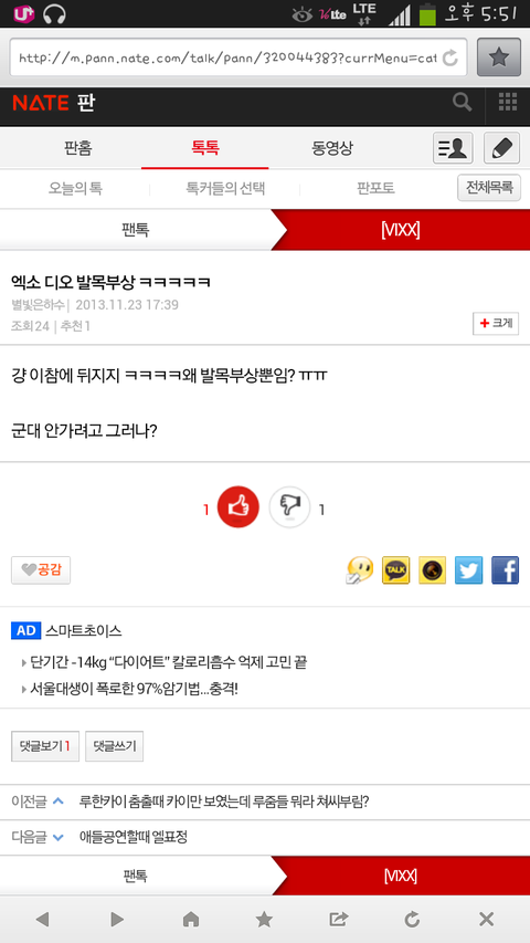 방금 엑소멤버 디오분 발목부상에 대한 글이 올라왔는데