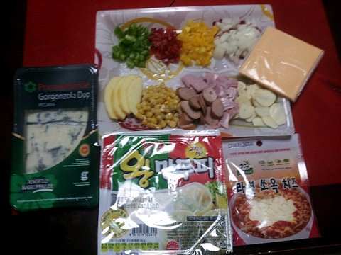 일반 : 만두피, 파프리카, 양파, 햄, 소세지, 스위트콘, 피자치즈, 케찹or 토마토페이스트