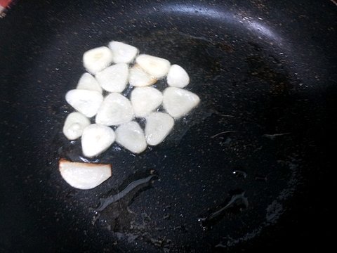 편 썰은 마늘을 팬에 기름을 두른 후에 구워 줍니다.