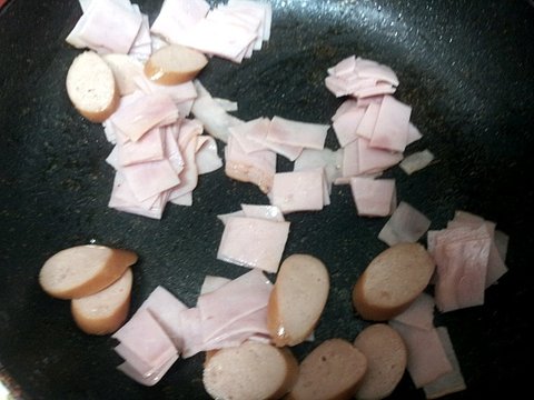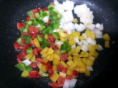 볶은 파프리카와 양파 햄들도 올려줍니다.