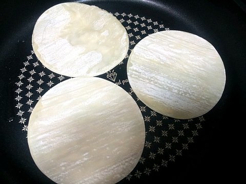 만두피는 후라이 팬에 살짝 구워줍니다.