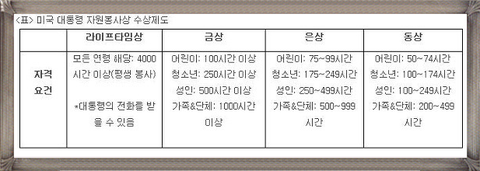 자격요건에 보시면...4000시간 이상 봉사하신 분들에게 드리는 상으로