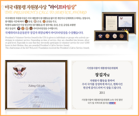 <장길자회장님께서 라이프타임상 수상하셨어요..^^>