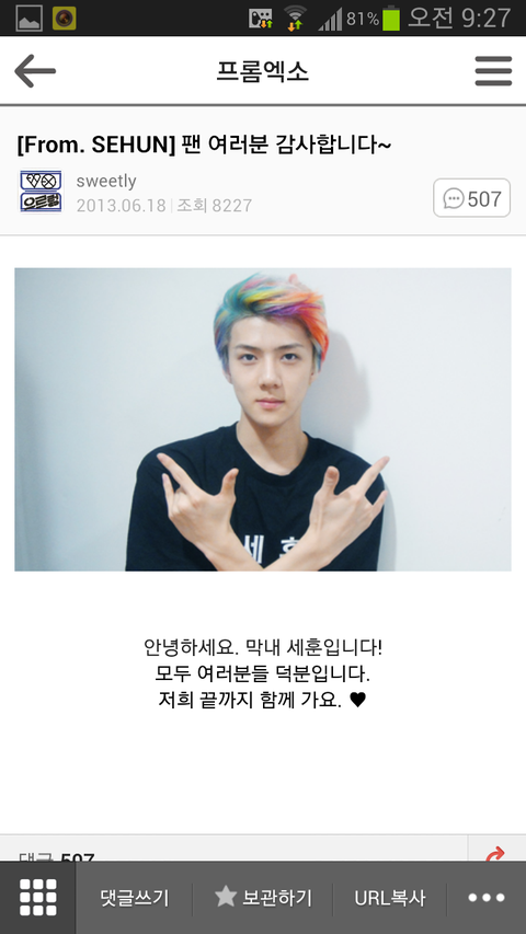 인터뷰에서도 팬들얘기 빠지지않고 항상 함께했으면 좋겠다 표현잘못해서 미안하다고 하는애임 제발 세훈이 마음 좀 깔아뭉게지마 자신은 나름 노력해서 마음 표현하는데 팬들이 아니라고 계속 부정하면 나같아도 정떨어지겠어