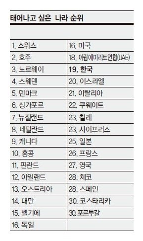 세계 네티즌이 선정한 만약 환생한다면 다시 태어나고 싶은 나라 BEST30