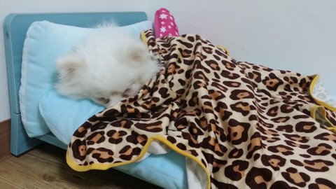 편히 잠을 못 이루는.. 까다로운 개이기도 함.
