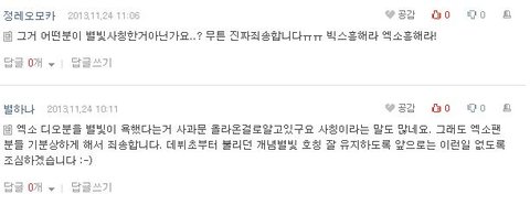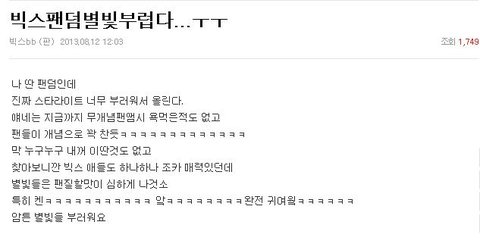 또 이번에는 별빛을 칭찬하는 글이 올라왔음