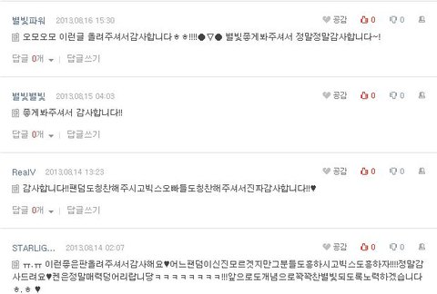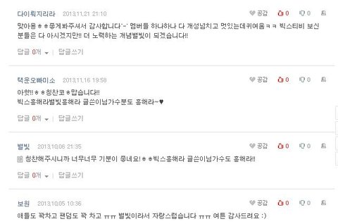 .......? ?!!!?!?!?!?!?!?!?!?? 뭐 이런 천사들이 다있음? 이게 댓글의 전부는 아니다만 거의 다 이런 댓글이었음.ㅠㅠㅠㅠㅠ
